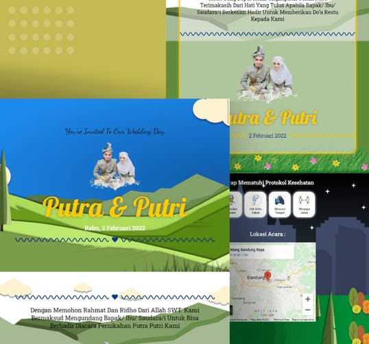 Kumpulan template landing page 100% canva yang bisa digunakan untuk membuat landing page dengan tema invitasi atau undangan wedding pernikahan.